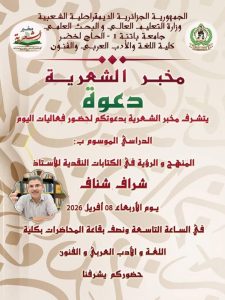 - يوم دراسي: المنهج و الرؤية في الكتابات النقدية ل أ.د شراف شناف